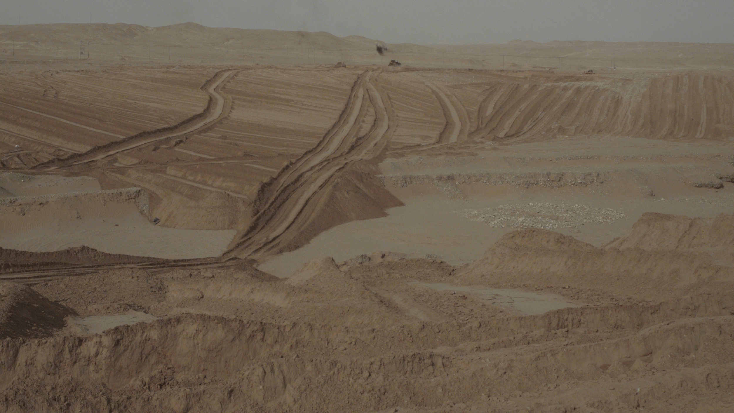 Treasure Hunt centers on historical treasures buried deep underground and jade, a symbol of Eastern culture, in a narrative about expeditions and excavations. The video work is based on archeologist Aurel Stein’s three digs in western China (Xinjiang and Gansu) in the early twentieth century, the archeological logs that he wrote, and Liu’s footage of jade mining, extraction, and trade in Hotan, Xinjiang, in summer 2009 and winter 2019. The work explores archeological excavations and jade mining, two human activities that have a connection to the deeper layers of the earth. The work envisions geological movements that we cannot see and the ways in which the romantic mediums of wind and sand connect vanished history and current reality. Hundred-million-year-old glaciers, the continuous Kunlun range, deep gorges, dry riverbeds, terrifying sandstorms, ancient ruins, and still deserts give the video historical depth, as the artist reconstructs a treasure hunt on the ruins of the present.